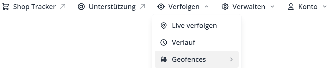 - Wählen Sie „Tracking“ und klicken Sie dann auf „Geofences“ in der oberen Menüleiste