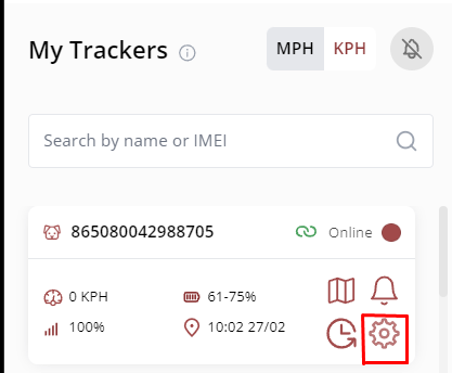 3. Click the settings cog on your desired tracker in the sidebar on the left of the screen