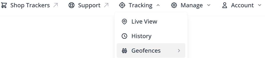 Select ‘Tracking’ and then click ‘Geofences’ from the top menu bar