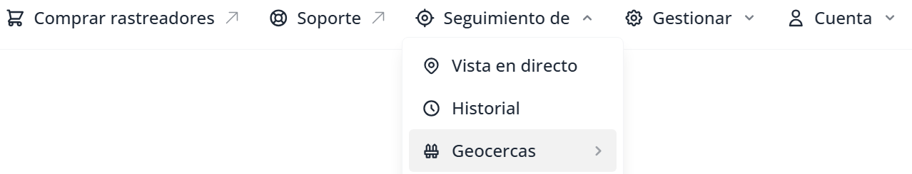 - Seleccione «Seguimiento» y, a continuación, haga clic en «Geocercas» en la barra de menú superior.