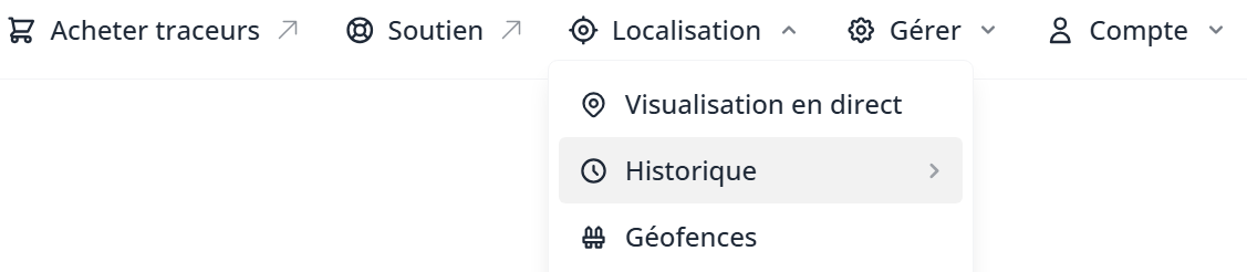 2. Cliquez sur « Suivi » en haut de l'écran, puis sur Historique.