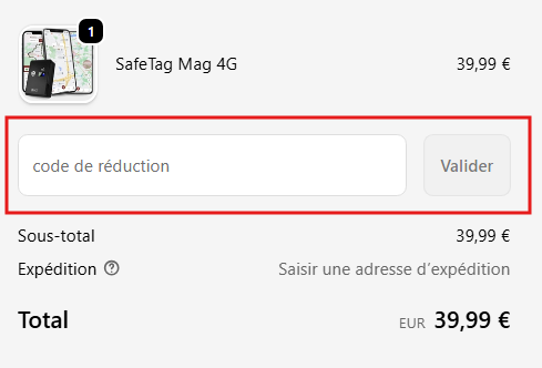 Ce guide explique comment activer un code de réduction dans notre boutique en ligne https://safetagtracking.com/shop, pour l'achat d'un traceur GPS, et non pour l'abonnement.