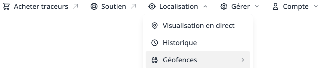 - Sélectionnez « Tracking “, puis cliquez sur ”Geofences" dans la barre de menu supérieure.